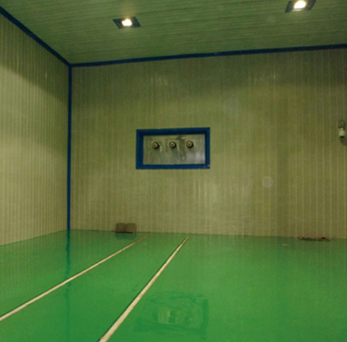 1.此處以鋼板焊接式電磁屏蔽室為例。包括六面龍骨框架、冷軋鋼板。龍骨框架由槽鋼、方管焊接而成,材料規格按屏蔽室大小確定地面龍骨(地梁)應與地面進行相對緣處理。墻、頂部冷軋鋼板厚度2mm,底部鋼板厚3mm,先在車間預制成模塊,分別焊接在龍骨框架內側。所有焊接均采用CO2保護焊,連續滿焊,并用專用設備撿漏,防止漏波。所有鋼質殼體必須進行良好的防銹處理;